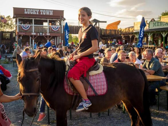 Die Westernstadt in Großpetersdorf bietet ab 31. Mai wieder scharfe Cowboys, heiße Bardamen, kriegerische Rothäute und vor allem viel Spaß für Jung und Alt im Wilden Westen. Wenn das Wetter mitspielt, herrscht jeden MONTAG – Juni, Juli und August – ein reges Treiben in der Lucky Town. Das Angebot beinhaltet neben Country Music natürlich auch Ponyreiten, Bogenschießen, Hupfburg, Lagerfeuer, Saloon und Bars, einen Kindershop,