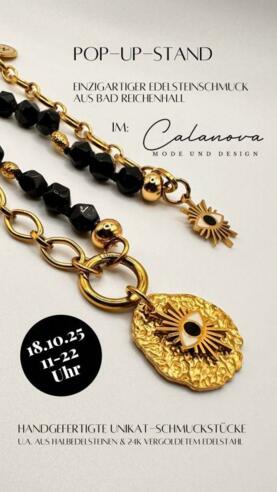 Handgemachte Schmuckunikate, funkelnde Edelsteine und ein Tag/Abend (von 11-22 Uhr ) voller Inspiration: Der Calanova Shop lädt herzlich zu einem besonderen Event ein, das Mode, Kunsthandwerk und Lifestyle auf einzigartige Weise verbindet.