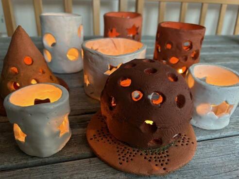 Mit stimmungsvollen Windlichtern wollen wir die dunkle Jahreszeit etwas heller machen.Wer mag, kann am zughörigen Glasurtermin seinem Windlicht Farbe verleihen.Der Termin ist ausgebucht.