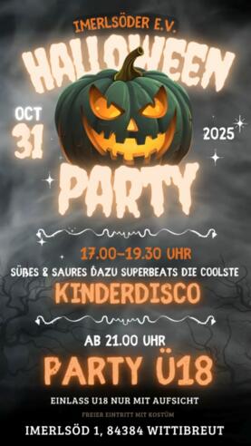ab 21:00 Uhr: Ü18 Halloween-Party mit heißen Beats und schauriger Stimmung.