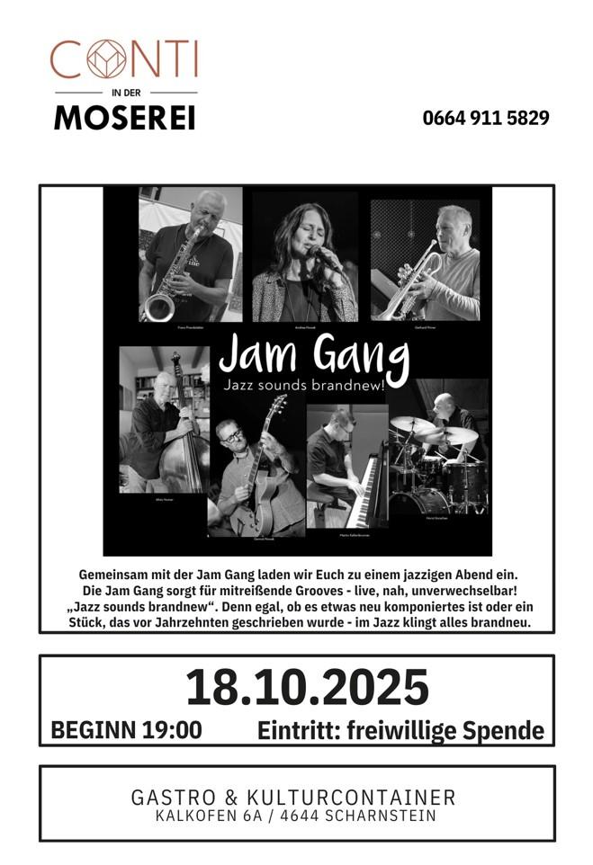 Gemeinsam mit der Jam Gang laden wir euch zu einem jazzigen Abend ein.