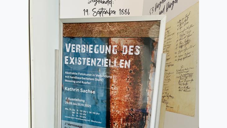 Kathrin Sachse präsentiert in ihrer großen Einzelausstellung im Altstadtsaal der VR-Bank in Landsberg am Lech zahlreiche Werke in ihrer besonderen Stilrichtung „Abstrakte Fotokunst in Verbindung mit handbearbeitetem Stahl, Kupfer und Messing“. Die Austellung kann bis 26.10. zu den regulären Öffnungszeiten besichtigt werden. Am Wochenende 18. und 19.10. bietet die Künstlerin jeweils von 11-15 Uhr Führungen für spontane Besucher oder Gäste mit Voranmeldung an.