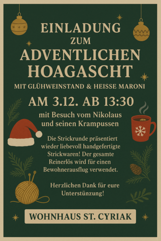 Einladung zum Advenlichen Hoagascht mit Glühweinstand & heißen Maroni