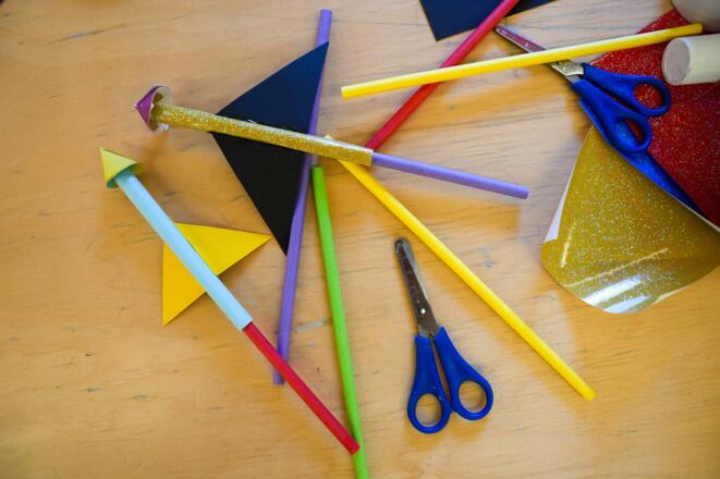 Aus Papier falten wir federleichte Raketen, die durch Pusten pfeilschnell abheben.