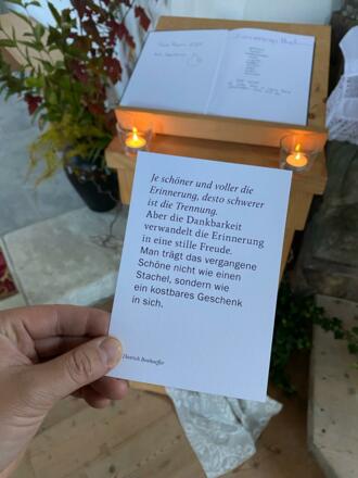 "Die Stationen sind sehr ansprechend und einfach gestaltet. Es ist generell eine sehr schöne und ruhige Atmosphäre, die anregt sich mit seiner Trauer zu beschäftigen. Dafür habe ich sonst meistens keine Zeit."