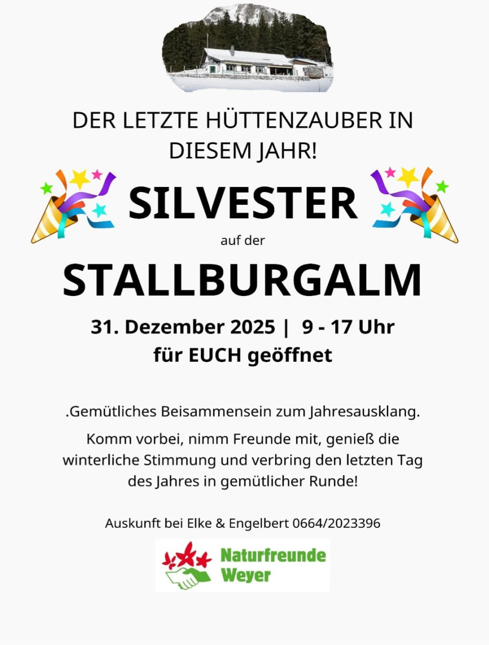 Gemütliches Beisammensein zum Jahresausklang. Kommt vorbei, nehmt Freunde mit, genießt die winterliche Stimmung und verbringt den letzten Tag des Jahres in gemütlicher Runde.