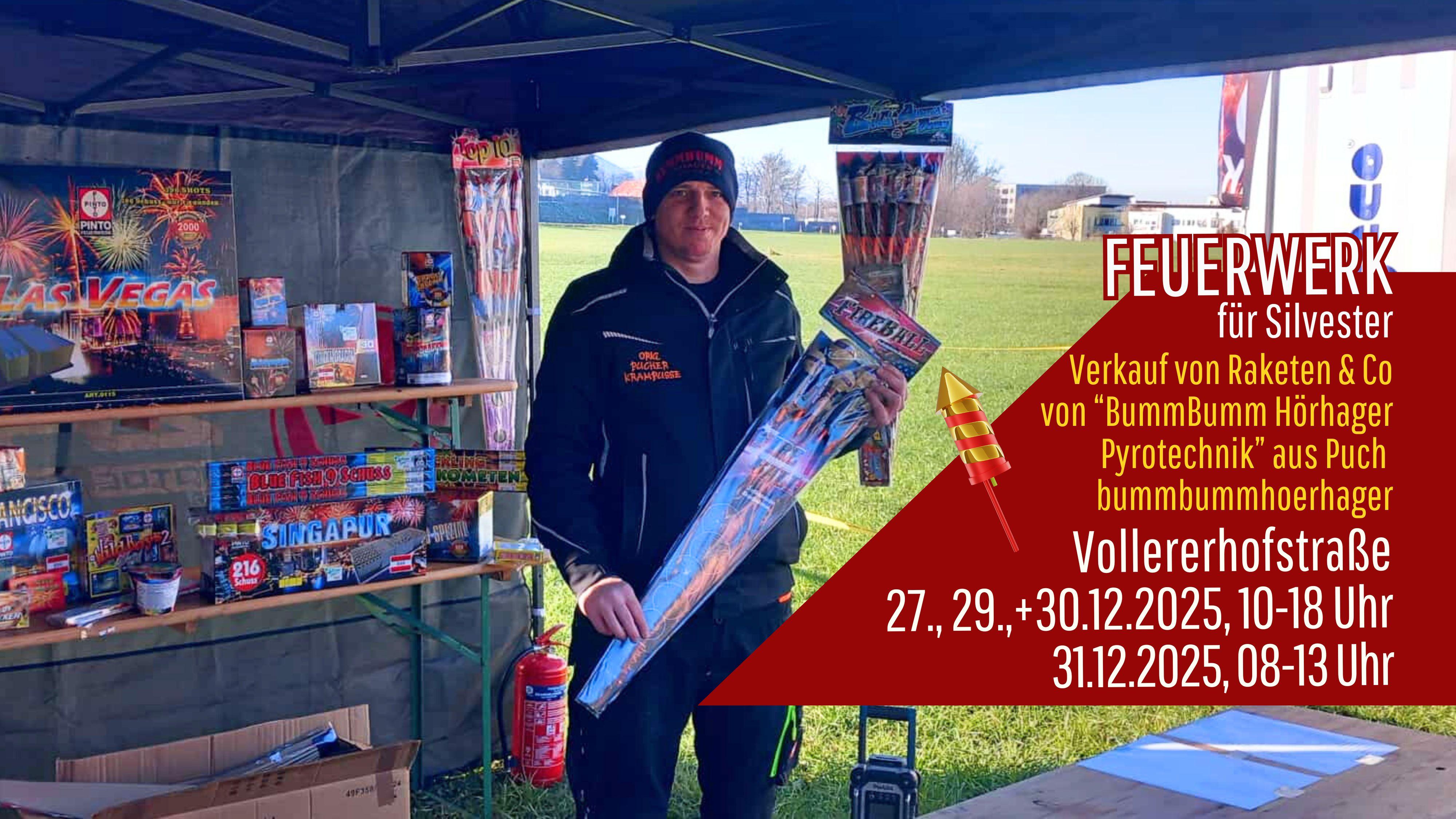 Verkauf von Raketen & Co von "BummBumm Hörhager Pyrotechnik" aus Puch.