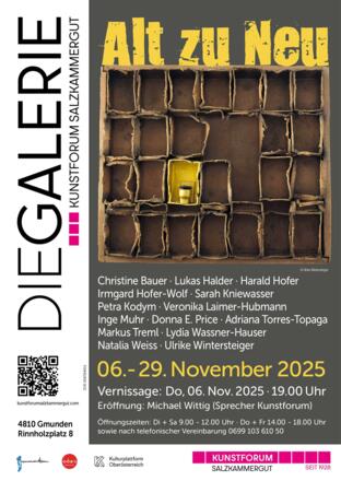 Vom 6. bis 29. November 2025 präsentieren Künstler*innen des Kunstforum Salzkammergut und Gastkünstler*innen in der Galerie DIE GALERIE in Gmunden Kunst aus gebrauchten Gegenständen und Materialen.