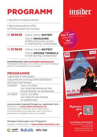 Auf dich warten eine SL- und RTL-Rennstrecke mit Zeitmessung, ein Waxl-Kurs, eine große Tombola sowie ein Meet & Greet mit ÖSV-Stars und Nachwuchsrennläufer:innen.