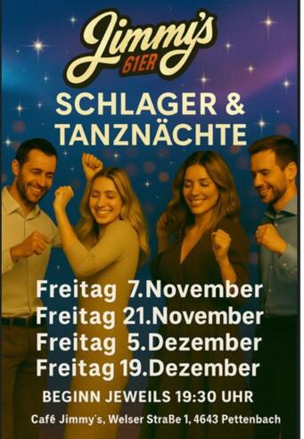Das Cafe Jimmy´s (vorher Cafe Seitenblicke) veranstaltet im Almtal Center am Samstag, 02. März 2024 ab 19:00 Uhr einen Oldiabend mit Hits aus den 70er, 80er und 90er!
