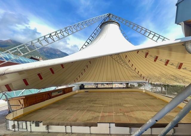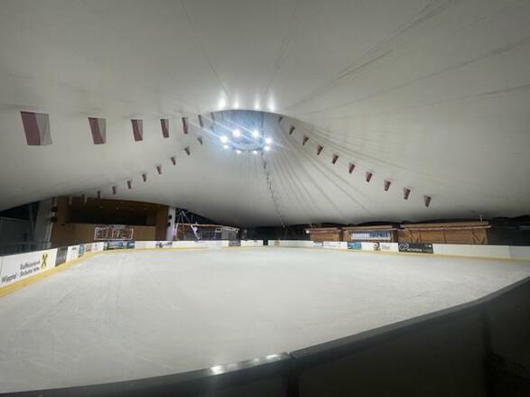 Die überdachte Kunsteisarena in Fulpmes liegt mitten im Ort beim Musikpavillon neben der Volksschule. Parkmöglichkeiten in der darunter liegenden Tiefgarage vorhanden.