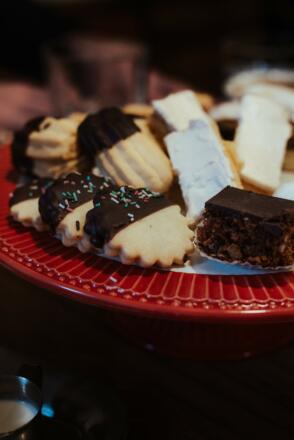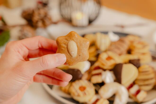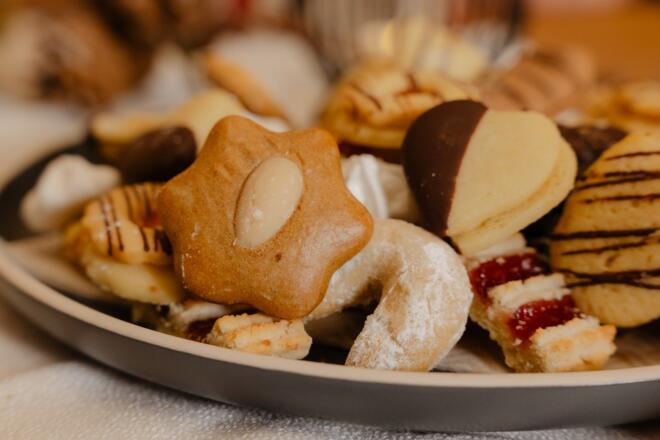 Neben Adventkränzen, Gestecken und Handarbeiten, gibt es auch verschiedene Naschereien und Kekse zu kaufen 🍪