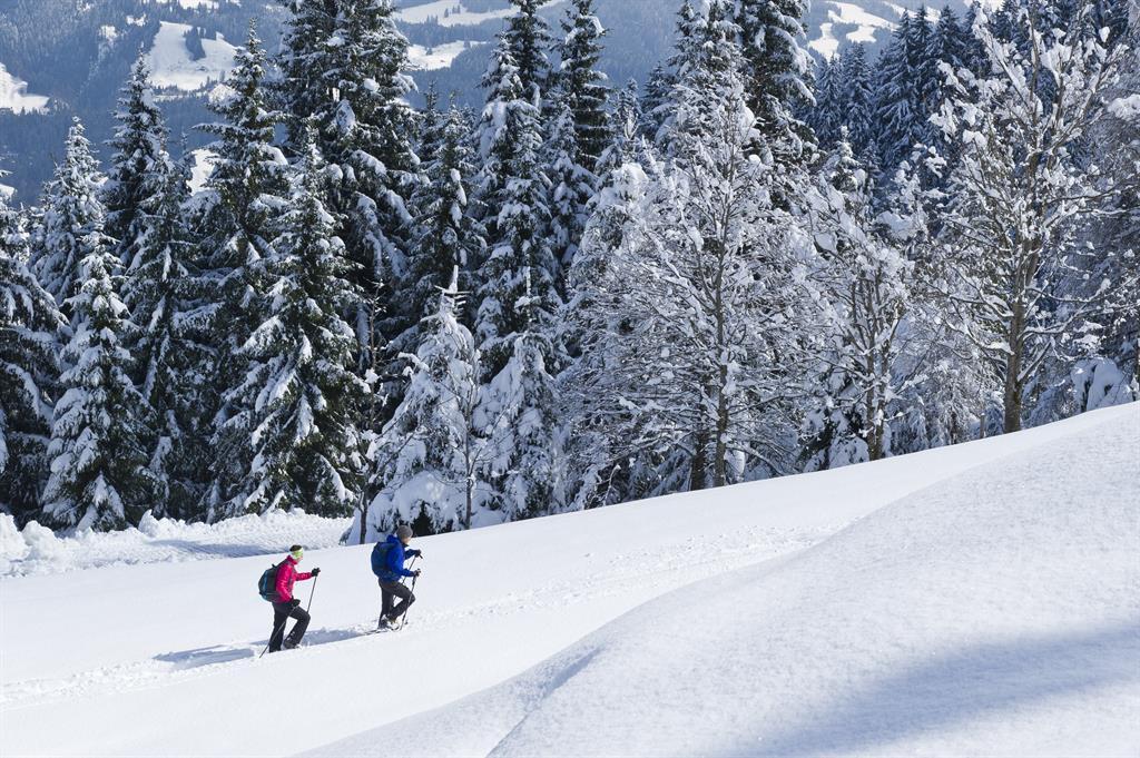 Im Angesicht des imposanten Kaisergebirges führt die Tour durch den Wald vorbei an alten Almhütten zu einer Rodelhütte oder Sie erkunden das Moor an der Sonnenseite des Wilden Kaisers. Winterliche Bergerlebnisse sind garantiert.
