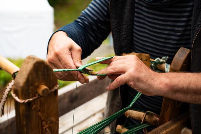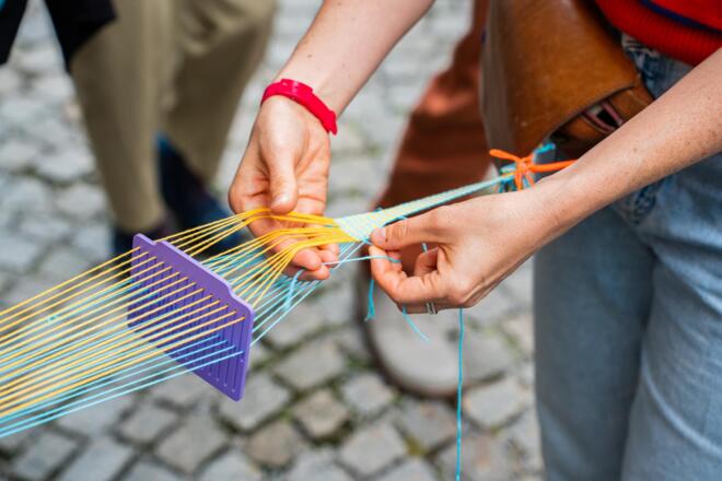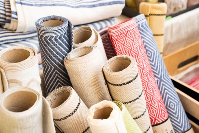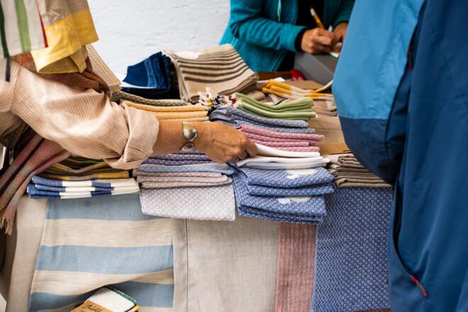 Parallel zum Webermarkt findet auch immer die Faserzone statt, bei der Garne, textile Kleinwerkzeuge und Materialien verkauft werden.
