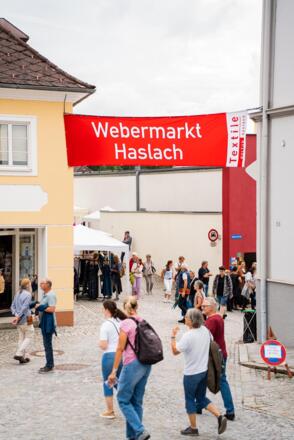 Der Markt findet im ältesten Ortsteil Haslachs, in den verwinkelten Gässchen „auf der Stelzn“ statt, sowie rund um die alte Textilfabrik „Vonwiller“, in der heute das Textile Zentrum Haslach beheimatet ist. Er bietet in erster Linie für Handweber:innen, Textilschaffende und heimische Webereibetriebe eine Verkaufsmöglichkeit für ihre hochwertigen Produkte und macht deren einzigartige Qualität für ein fachkundiges Publikum sichtbar. Eine Fachjury wählt jährlich aus zahlreichen Bewerbungen ca. 100 Aussteller:innen aus. ART AUSTRIA hat dem Webermarkt Haslach das Qualitätssiegel verliehen und reiht ihn im Ranking der Österreichischen Kunsthandwerksmärkte seit Jahren auf Nummer eins.