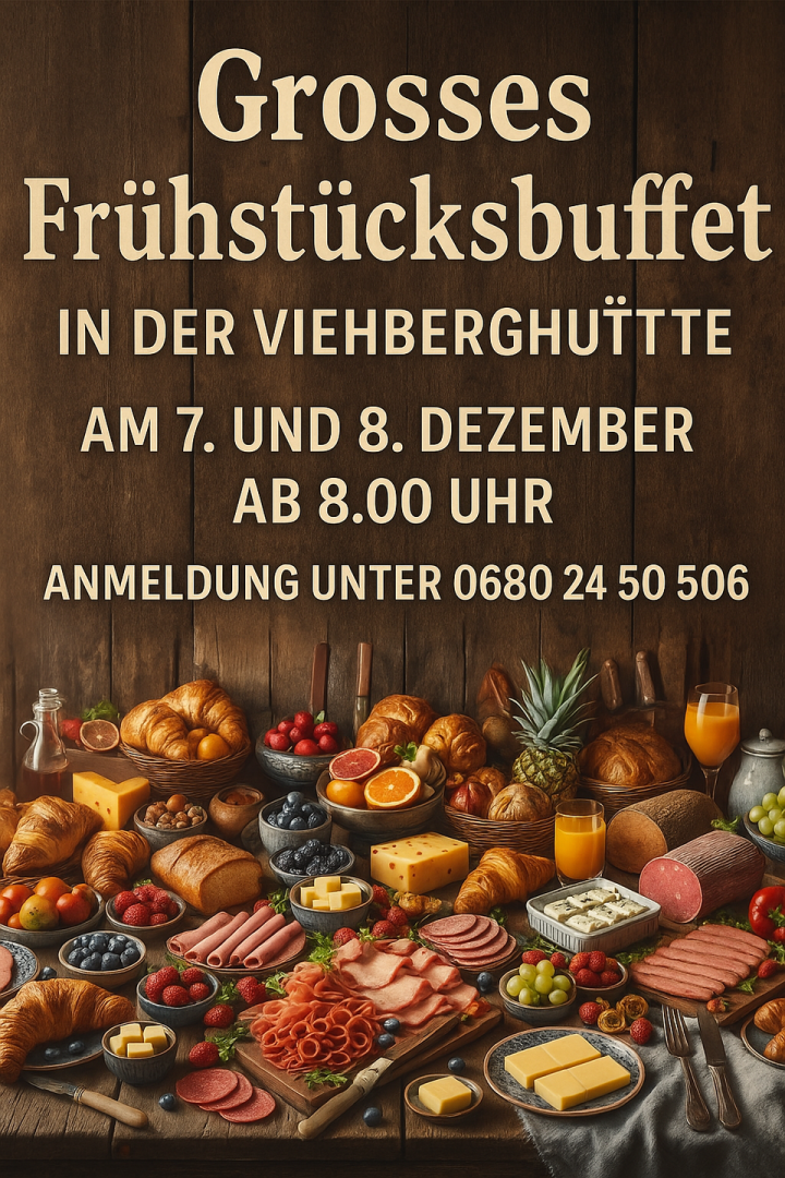 ab 8 Uhr Frühstücksbuffet am 7. und 8. Dezember in der Viehberghütte.