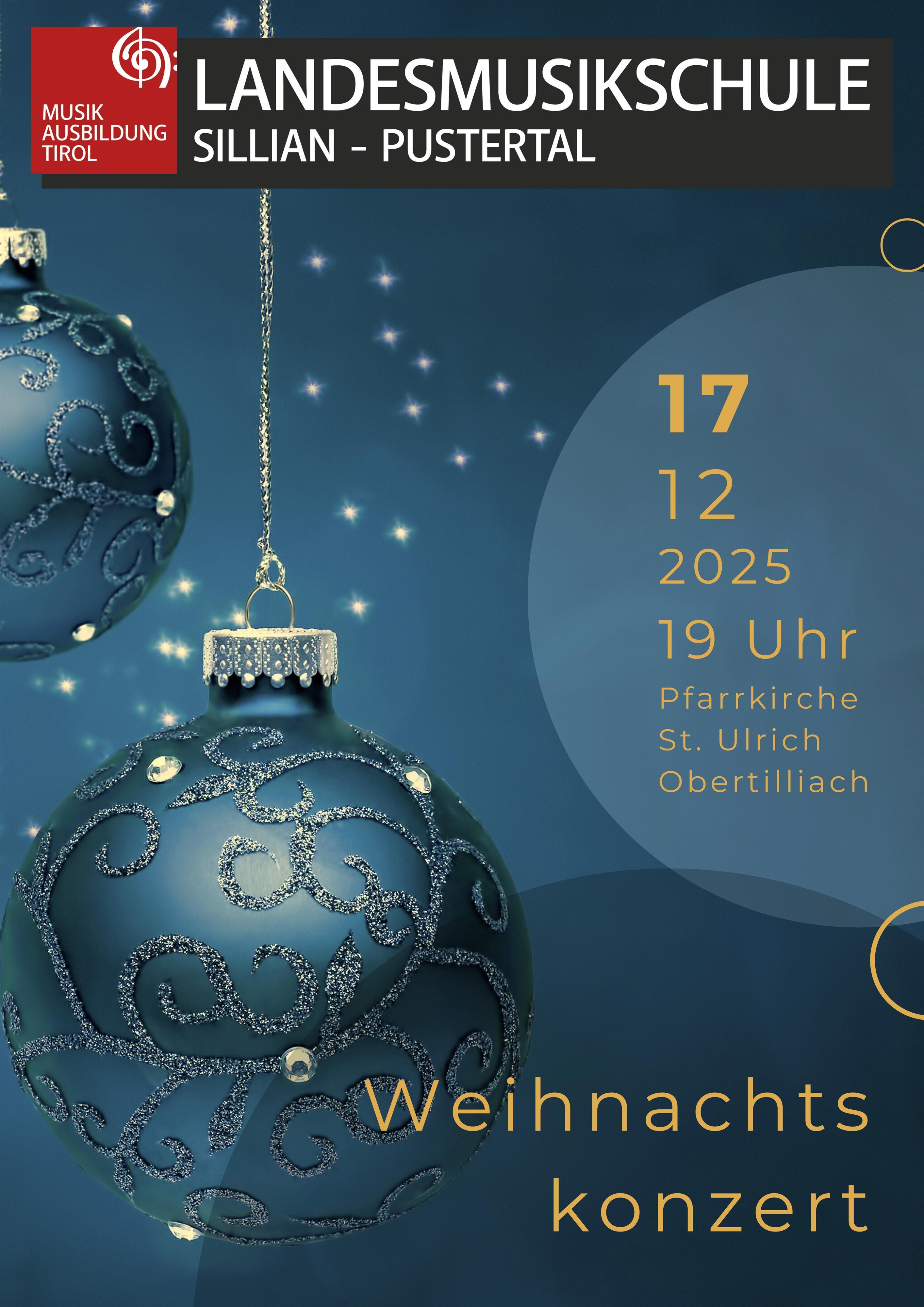 Die Landesmusikschule Sillian-Pustertal lädt zum WEIHNACHTSKONZERT am Mittwoch, 17. Dezember 2025 ab 19.00 Uhr in die Pfarrkirche St. Ulrich in Obertilliach