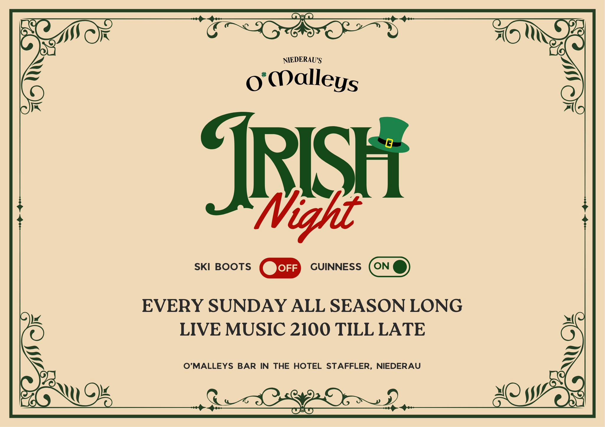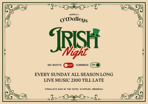Jeden Sonntag, die ganze Saison über, verwandelt sich das O’Malley’s Bar in einen lebendigen Irish Pub!