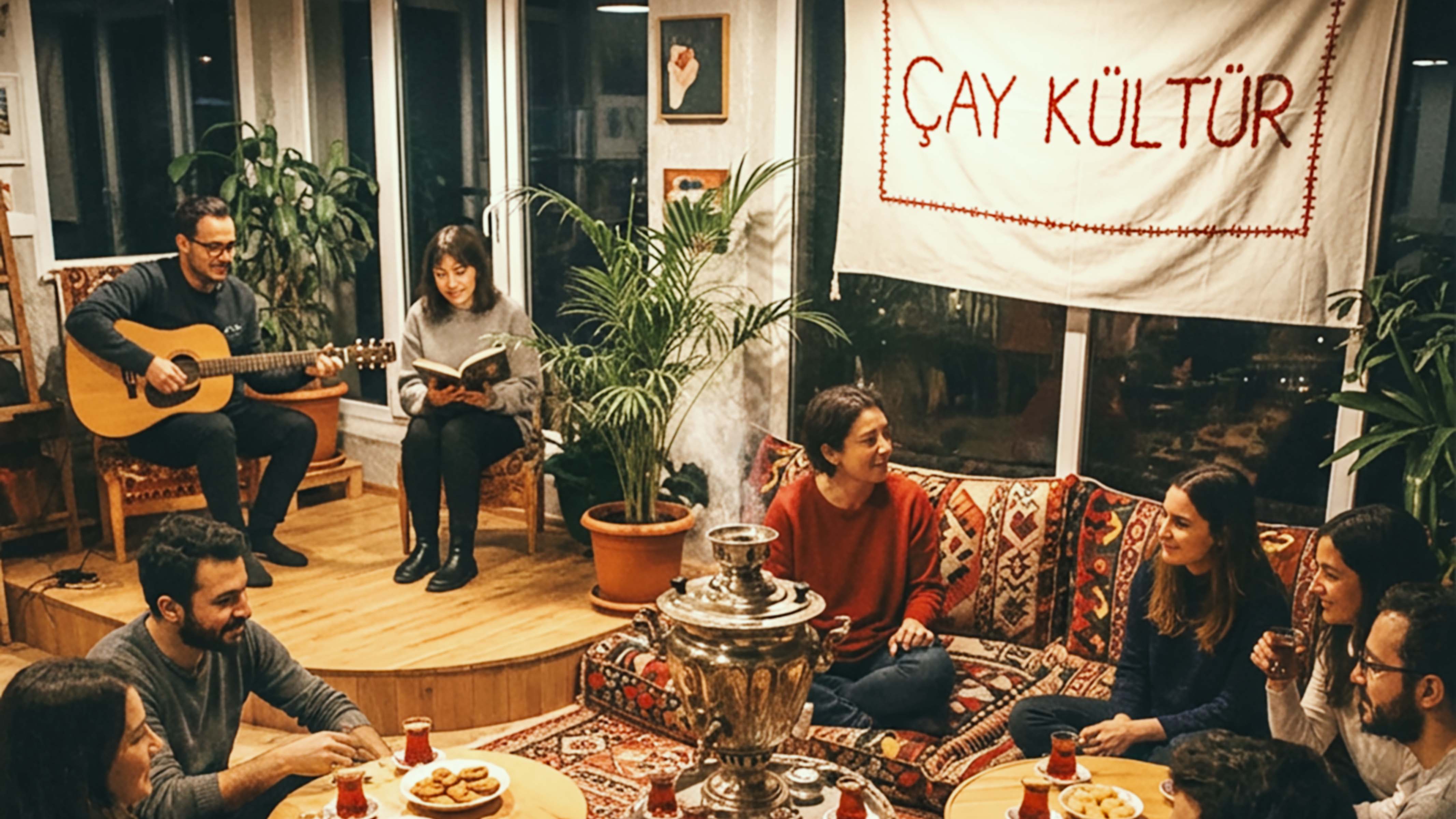 In der Türkei ist die Zubereitung von Çay ein Zeichen der Liebe – eine Zeremonie, die Raum, Zeit und Aufmerksamkeit verdient. Fatih Özcelik bereitet mit Helfer:innen verschiedene Teesorten zu – eine Einladung, zwischen dampfenden Tassen Menschen kennenzulernen und ins Gespräch zu kommen. Und wer mag, nimmt die offenen Bühne ein und präsentiert Musik, Gedichte oder kleine Geschichten.