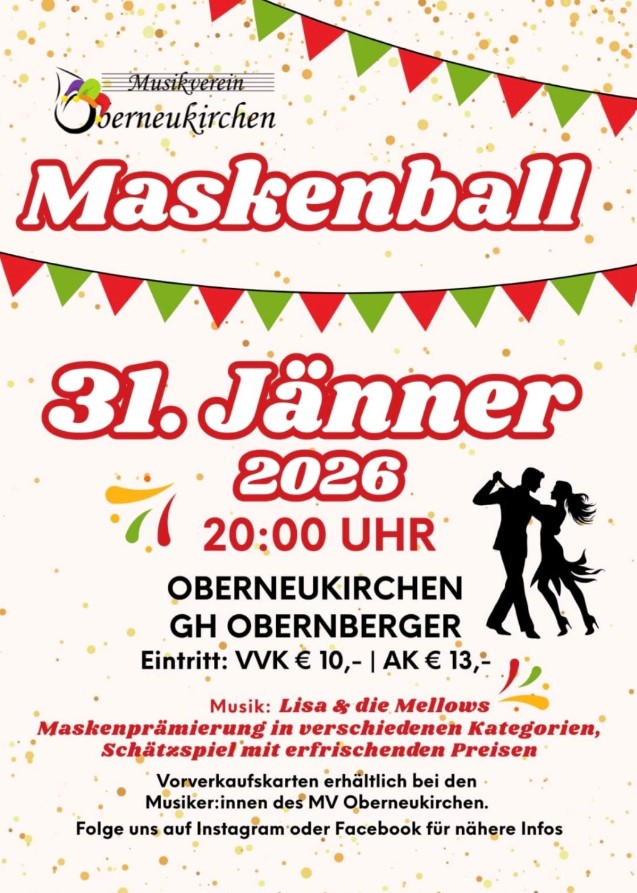 | Preisinformation | Eintritt: VVK € 10,- | AK € 13,- Vorverkaufskarten erhätlich bei dden Musiker:innen des MV Oberneukirchen |
