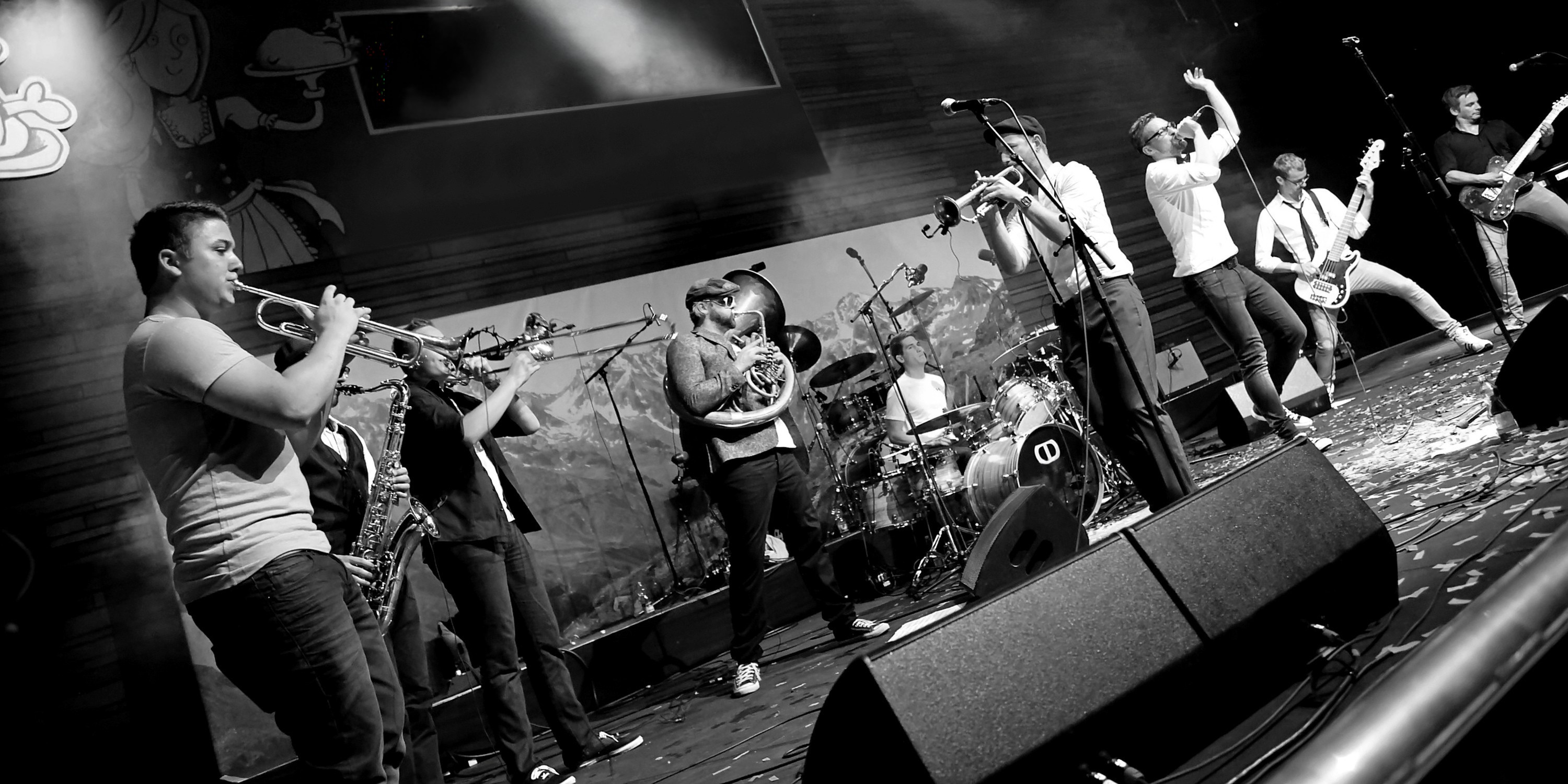 Wenn mitreißende Blasmusik auf ausgelassene Partylaune trifft, dann ist klar: Brass-Fans dürfen sich auf ein echtes Highlight freuen! Bluatschink sorgt gemeinsam mit energiegeladenen Bläsern vom ersten Moment an für ausgelassene Partystimmung. Als weiterer Höhepunkt steht Brassclub ein letztes Mal auf der Bühne und macht diese Nacht zu einem unvergesslichen Erlebnis! Ein Muss für alle Blasmusik-Fans! - Bluatschink spielt Blasschink - „Dialekt-Brass aus dem Lechtal“ Als Mitte der Neunziger Jahre Songs wie „Funka fliaga“ oder „I han di gera“ die Hitparaden im Alpenland eroberten, wunderten sich alle über den Dialekt, den viele Menschen einfach nicht eindeutig Tirol, Bayern oder Vorarlberg zuordnen konnten. Aber egal, ob man jedes Wort verstehen kann oder nicht - die Melodien sind Ohrwürmer, die man nicht mehr aus den Gehörgängen kriegt. Das Liedermacher-Duo Margit & Toni Knittel kann man immer wieder mal in der kleinen Zweier-Besetzung erleben - einfach nur 2 Stimmen und 2 Gitarren. Nicht mehr - aber auch nicht weniger! Aber, wenn es heißt „Bluatschink spielt Blasschink“ – dann hat sich das Ehepaar aus dem Lechtal Verstärkung geholt. Da steht dann eine vielköpfige Truppe auf der Bühne und erbringt den Beweis, dass die Bluatschink-Song auch für diese Variante geschaffen sind. Je nach Besetzung sind da dann bis zu 10 Musiker:innen am Werk und man darf sich sicher sein, dass die Songs wie ein frischer, übermütiger Bergwind durchs die Konzerthallen des Landes wehen. Und was bei Bluatschink immer schon üblich war: Das Publikum singt bereits nach wenigen Takten mit! Dialekt hin oder her - da gibt es einfach kein Halten mehr! Die Arrangements der Songs ist man ja vom Radio her in voller Besetzung gewöhnt: Zum Austropop-Sound mit E-Gitarre, Schlagzeug, Bass und Keyboard kommen jetzt aber auch noch Top-Musiker aus dem Blasmusik-Sektor dazu. Und musikalisch führt bei dieser Besetzung Johannes Bär die Regie – den alle im ganzen Land noch vom HMBC kennen. Und Bluatschink beehrt das Kulturhaus Dornbirn einen Monat bevor diese Besetzung beim legendären Woodstock der Blasmusik zu hören sein wird – natürlich auf der Hauptbühne! - Brassclub Ende 2013 beginnt die Geschichte rund um den Brassclub. Ein Haufen Musiker aus den unterschiedlichsten Richtungen taten sich zusammen, um guten Sound zu produzieren. Schnell war klar, dass man nicht einfach nur irgendetwas machen wollte, sondern eine gute Mischung aus allem. So entstand dann eine Richtung, die sich eben aus „Brass“ und „Clubsound“ zusammensetzt - Brassclub war also geboren. Beim Bezirksmusikfest in Lingenau 2022 beendete Brassclub dann die Bühnenkarriere. Doch nach einem kurzen Revival im Jahr 2025 – ebenfalls in Lingenau – flammte die Motivation wieder auf. Deshalb konnten die Jungs von Brassclub auch nicht widerstehen, für ihren langjährigen Unterstützer Wolfgang Preuß ein letztes Mal die Bühne zu betreten.