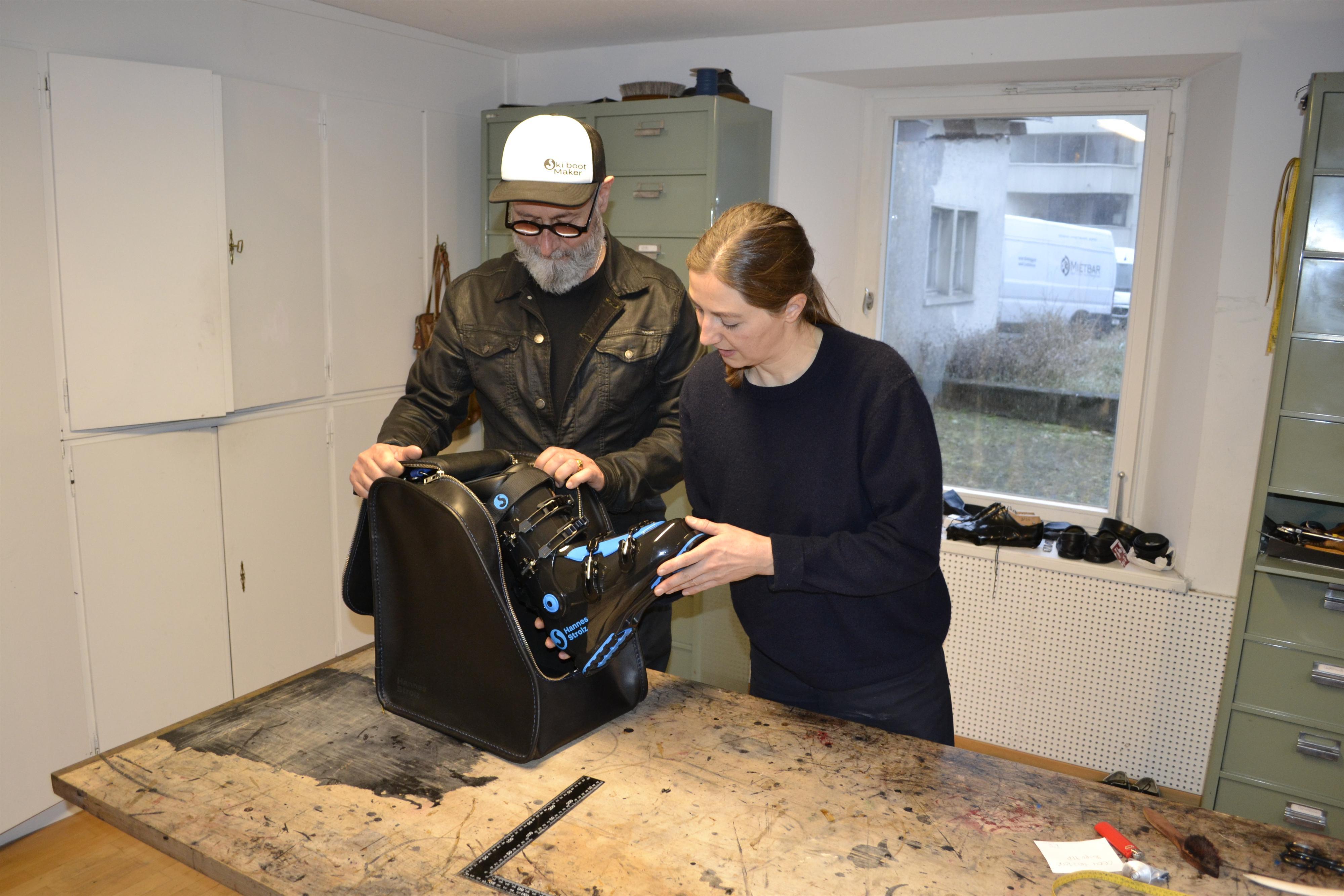 Die Schuh- und Taschenmacherin Christine Dünser aus Dornbirn hat für den Skischuhhersteller Hannes Strolz eine exklusive Skischuhtasche aus Leder gefertigt. Die Skischuhtasche - abgestimmt auf den neuen Evolution Black Pearl ist in der Skibootique erhältlich.