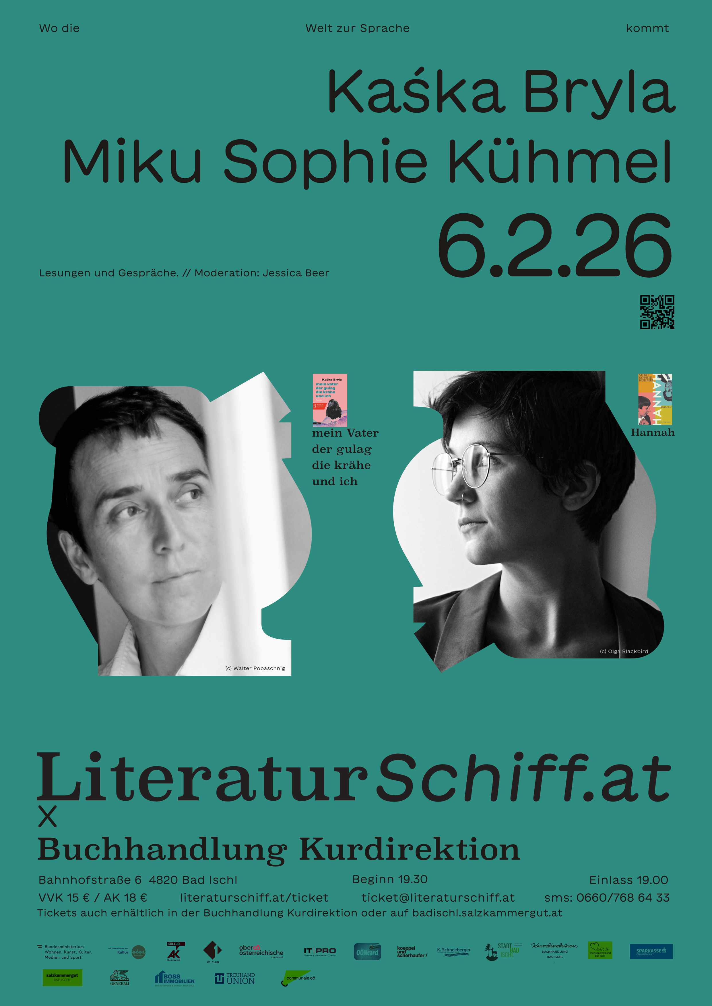 Preisinformation VVK 15 / AK 18 € https://www.literaturschiff.at/ticket/ Karten auch erhältlich in der Buchhandlung Kurdirektion und in der Bibliothek Bad Ischl