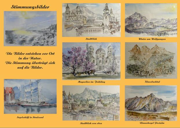 Gezeigt wird eine Auswahl der schönsten Stadtansichten & Landschaften von Franz Moser – von detaillierten Zeichnungen über lebendige Aquarelle bis hin zu stimmungsvollen Bildern.