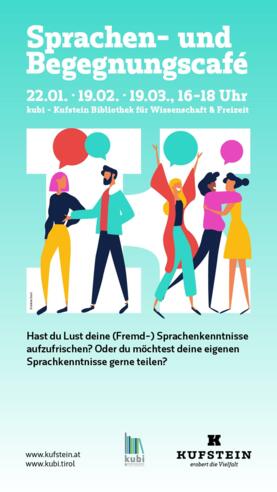 Hast du Lust deine (Fremd-) Sprachenkenntnisse aufzufrischen? Oder du möchtest deine eigenen Sprachkenntnisse gerne teilen? Im Sprachencafé kannst du neue Kontakte knüpfen und deine sprachlichen und interkulturellen Kompetenzen verbessern. Das internationale Sprachencafé wird vom Integrationsbüro der Stadtgemeinde Kufstein in Kooperation mit der kubi angeboten.