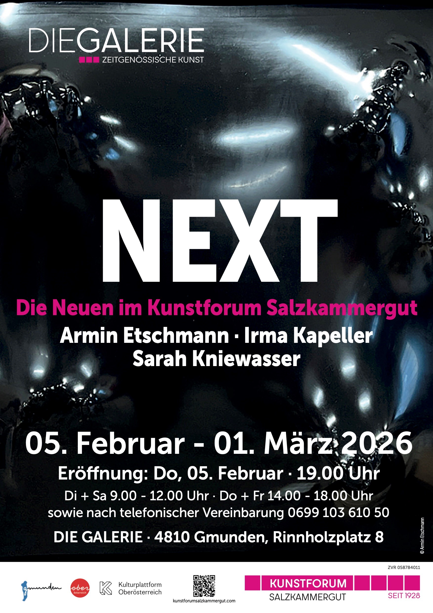 Im Februar präsentiert das Kunstforum Salzkammergut seine neu aufgenommenen Mitglieder: Armin Etschmann, Irma Kapeller und Sarah Kniewasser. Ihre Arbeiten in unterschiedlichen Medien und mit individuellen Perspektiven eröffnen neue ästhetische Bezüge und bereichern die lebendige Vielfalt des Kunstforums. Die Ausstellung lädt ein, die künstlerischen Ansätze im Dialog zu erleben und die Offenheit und Wandlungsfähigkeit des Vereins zu entdecken.