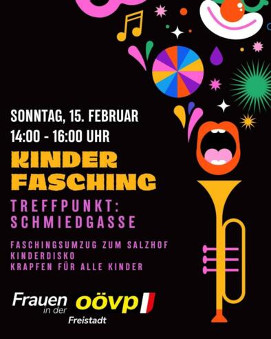 Die ÖVP Freistadt lädt zum Faschingsumzug und Kinderfasching in den Salzhof.