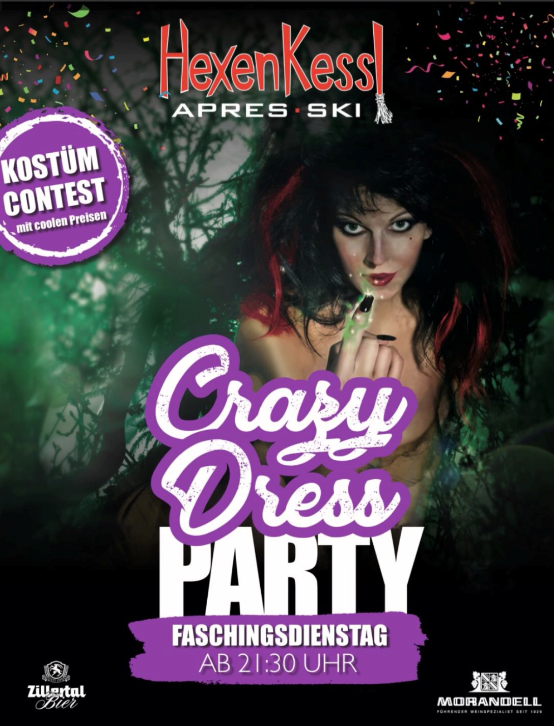 Am Faschingdienstag findet die legendäre Crazy-Dress-Party ab 21:30 Uhr im Hexenkessl statt.Kostümcontest mit coolen Preisen.