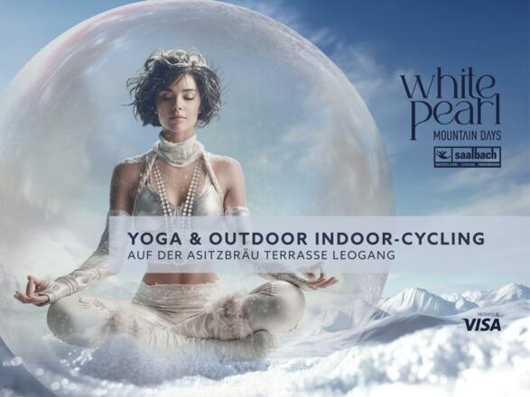 Die Yoga-Session am Berg im Winter, bei den White Pearl Mountain Days presented by Visa im Skicircus Saalbach Hinterglemm Leogang Fieberbrunn, ist ein ganz besonderes Erlebnis.