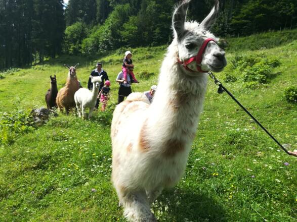 Du möchtest Alpakas und Lamas ganz nah kommen? Wir beginnen mit einer Stall- und Weideführung, bei der du die Tiere sogar aus der Hand füttern kannst. Dann machen wir uns langsam auf den Weg, wir halftern die Tiere und spazieren über Feld- und Waldwege rund um den Jodlerhof. Für Groß und Klein eine wunderbare Gelegenheit, die sanftmütigen Tiere näher kennen zu lernen, zu streicheln und sich von der entspannten Art anstecken zu lassen.