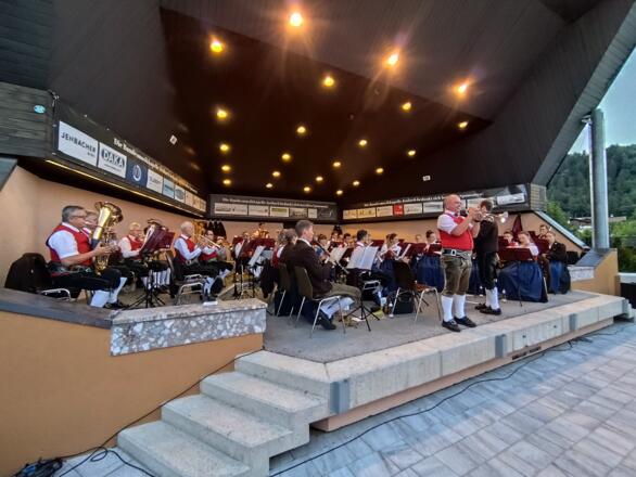 Platzkonzert bei jedem Wetter mit Überdachung und Ausschank, für Unterhaltung, Speis und Trank ist bestens gesorgt.