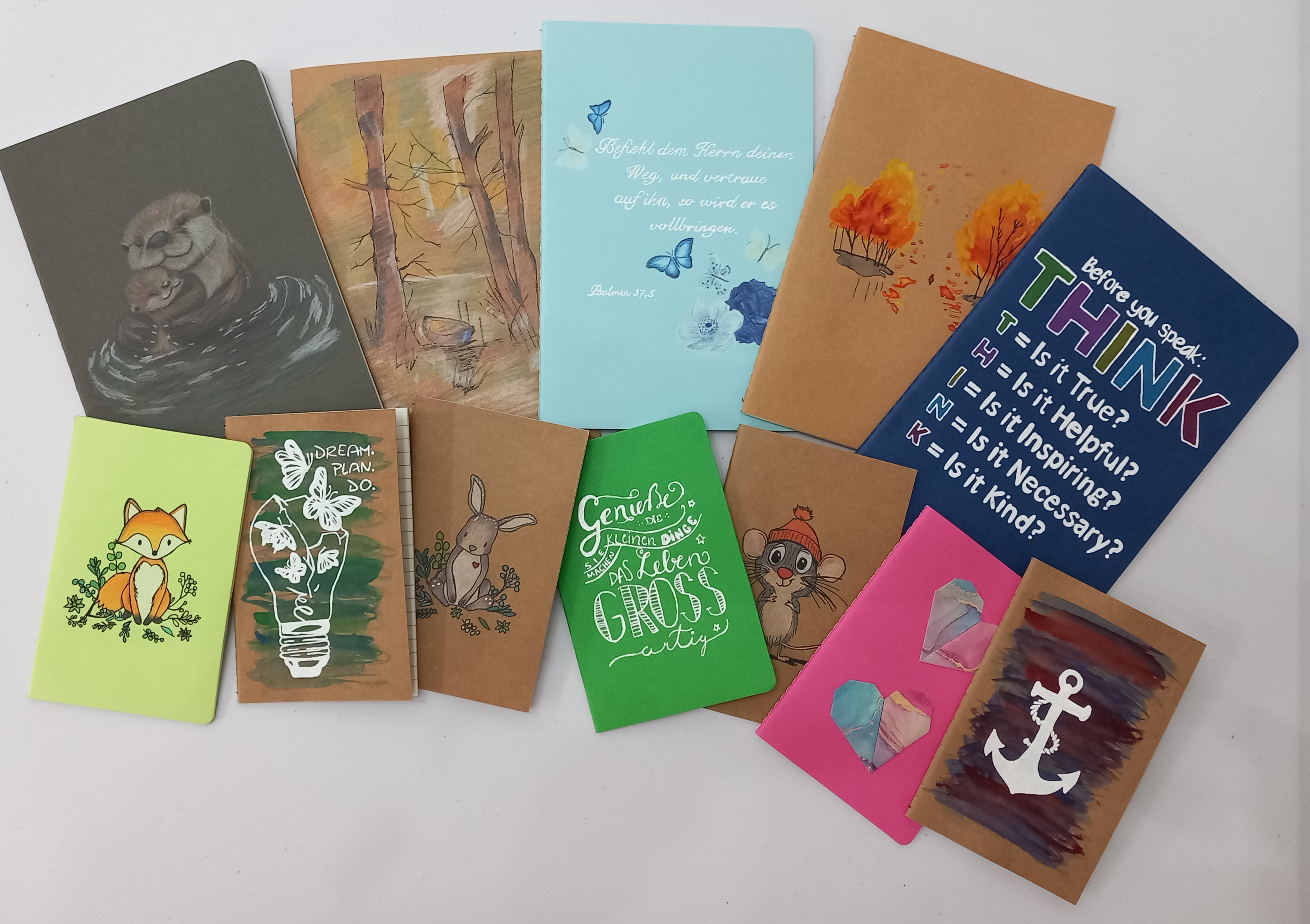 Gestalte dein eigenes persönliches Notizbuch. Gestalte dein eigenes persönliches Notizbuch – bunt, individuell und absolut einzigartig! Gemeinsam bemalen wir die Covers mit Farben und Gelstifte und lassen Kunstwerke entstehen. Am Schluss wirst du 3 tolle einzigartige Notizbücher mit nach Hause nehmen.