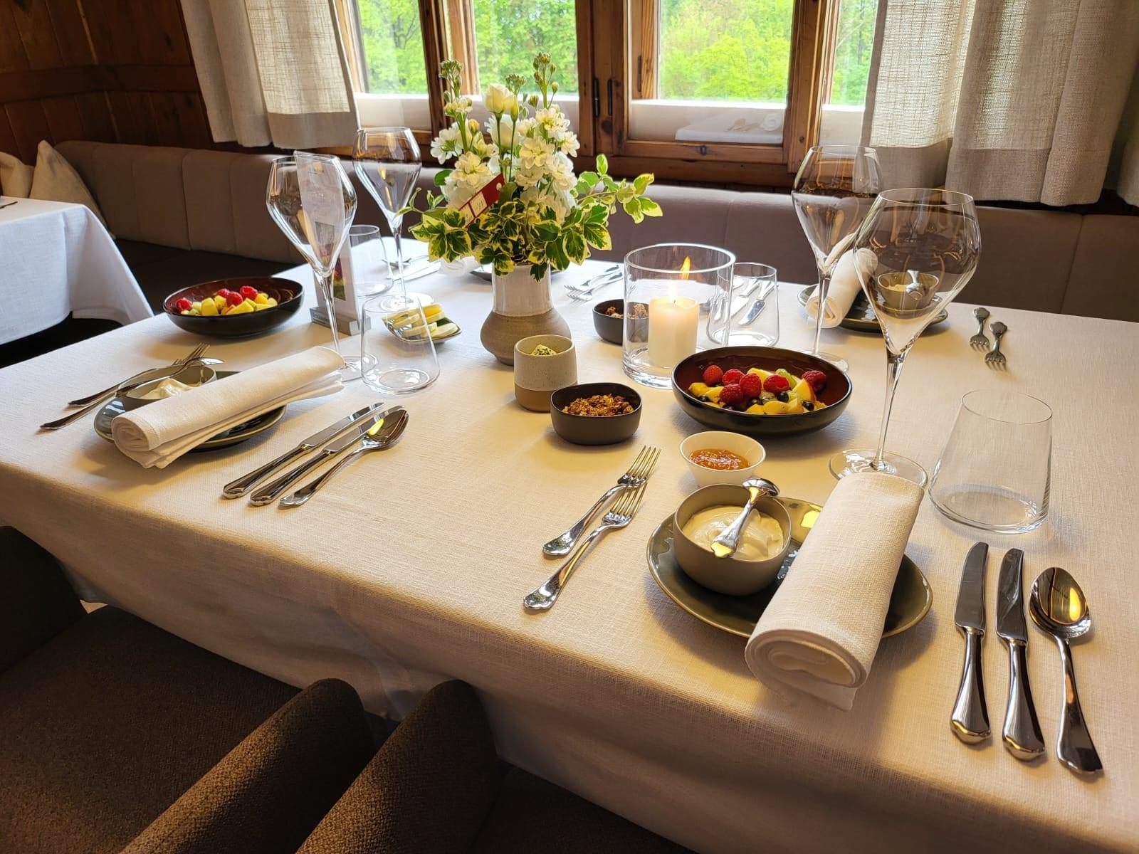Lassen Sie sich mit einem reichhaltigen Frühstück am Tisch und ein 6-Gänge Brunch-Menü mit BBQ und Jazz-Musik überraschen.