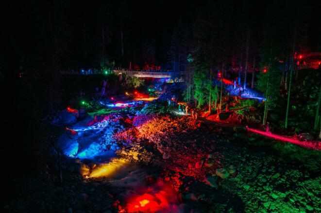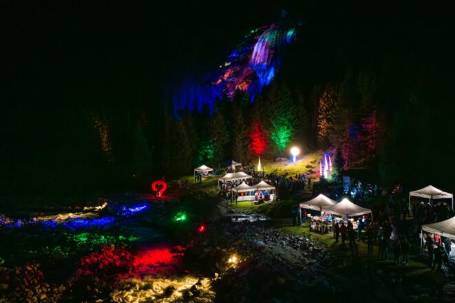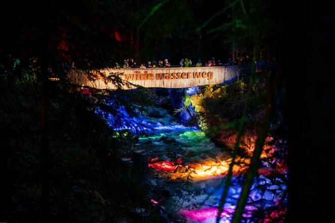 Spektakuläres Highlight ist natürlich wieder der beleuchtete Grawa Wasserfall.