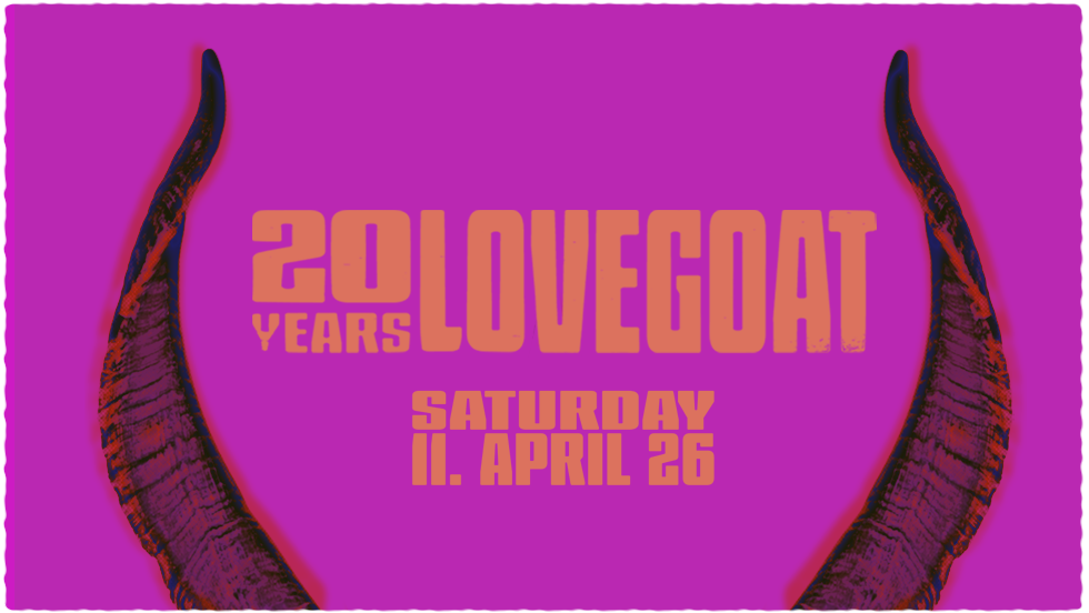 Wir feiern 20 Jahre LOVEGOAT! Seit 2006 machen wir genau das, worauf wir Bock haben, queerbeet von Space-Kraut bis Techno, von Punk über Wave bis Metal. Keine Schubladen, kein Genre-Korsett, nur mad-love für Sound und Underground-Spirit. Gemeinsam mit euch allen wollen wir einen Abend der Extraklasse zelebrieren! Mit dabei: