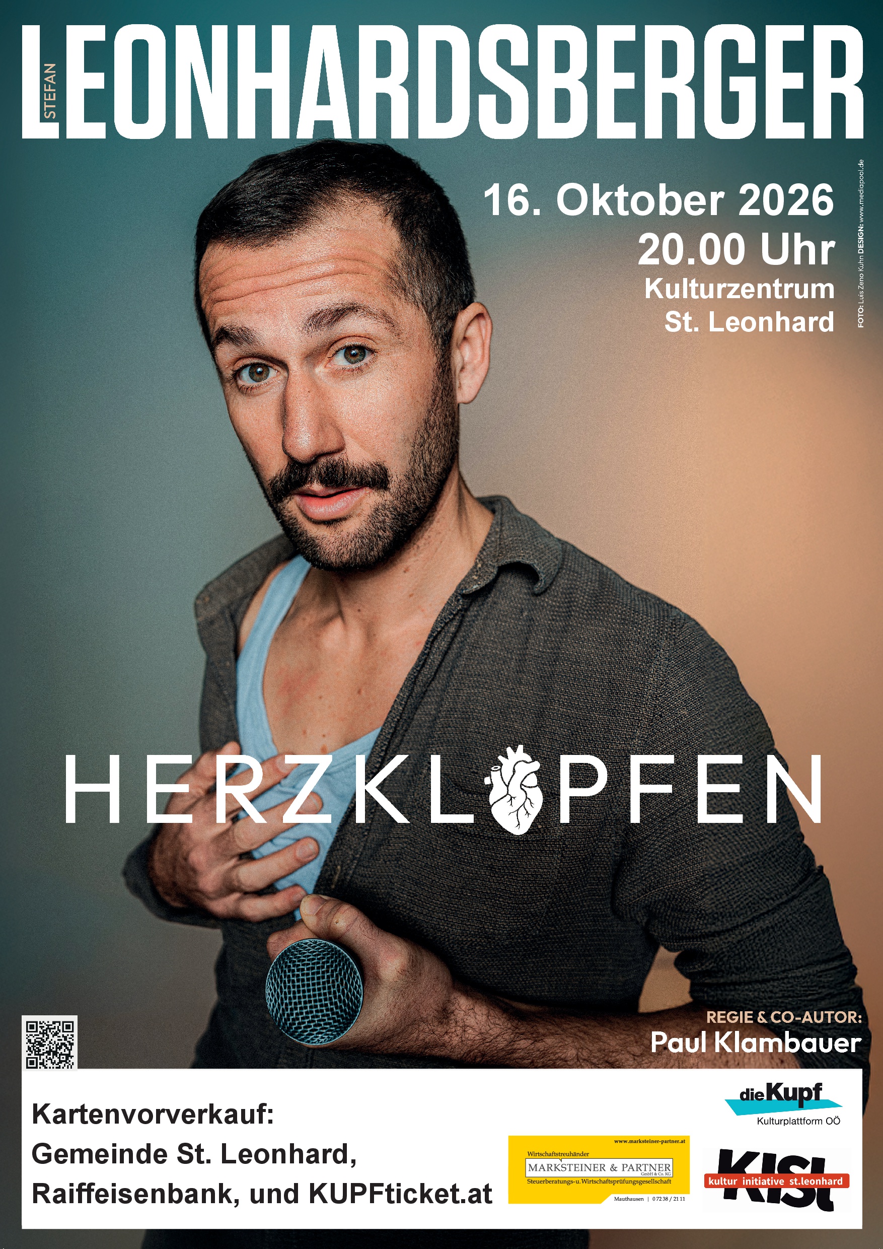 | Preisinformation | VVK 24,00 EUR AK 28,00 EUR Tickets erhältlich: Gemeindeamt St. Leonhard, Raiffeisenbank St. Leonhard & online: kupfticket.com |