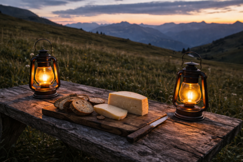 Dort bietet sich bei einer Rast die Möglichkeit, den Käse der Alpe Steris zu probieren.