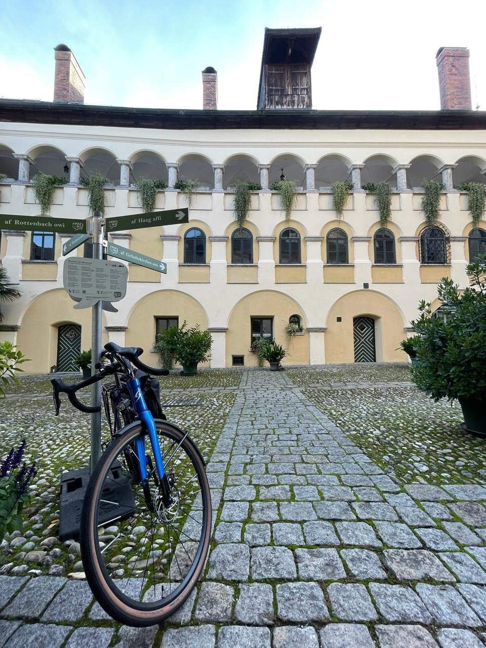 Gestartet wird vor dem Pfarrzentrum in Weibern. Die Route führt am Rande der Weiberau, vorbei am Schloss Aistersheim, dem Denkmal in Haidenheim, über die Stritzmanns Höhe zur Kirche St. Georgen bei Grieskirchen. Weiter über die St. Georgener Allee zum Schloss Parz bei Grieskirchen. Dort erhalten wir eine Führung über die Außenfresken des Landschlosses Parz. Das Mittagessen erfolgt in der Stadt Grieskirchen. Weiterfahrt über das Schloss Tollet, den Trattnachtal- und Pramtalradweg zur Kapelle am Renhartsberg am Fuße des Schulterzucker‘s in Pram. Nach dem Besuch der Sonderausstellung mit Führung im Heimatmuseum Schloss Starhemberg geht es zurück über das Geburtshaus von Achaz Wiellinger, dem Kaderbaunhof, und den Haager-Lies-Radweg zum Pfarrzentrum in Weibern.