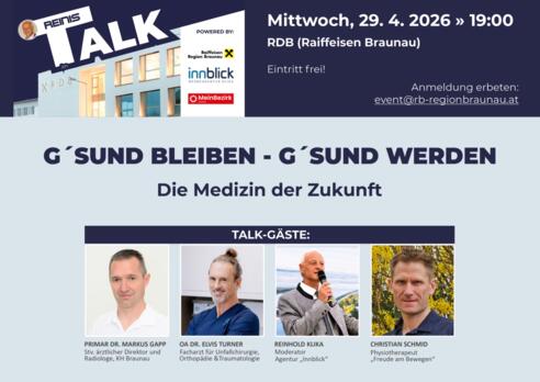 Das Talk-Format „REINI`S TALK“ im RDB Braunau. Diesmal zum Thema: „G´sund bleiben – G´sund werden“ – Die Medizin der Zukunft!