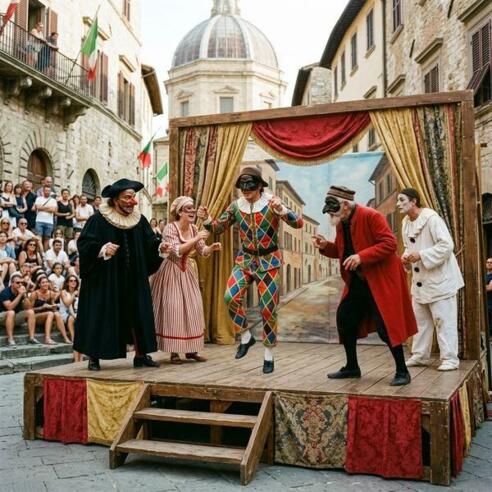 Einen Bezug zur Commedia dell’Arte nimmt das Abendkonzert „Pulicinella & Arlecchino“ am Samstag, den 20. Juni. Neben „Danse macabre“ von Saint-Saëns und der „Suite italienne“ von Strawinsky erklingt auch Mozarts selten gespielte „Musik zu einer Pantomime“. Der bekannte österreichische Regisseur Markus Kupferblum wird dieses Werk der Commedia dell’Arte szenisch umsetzen.