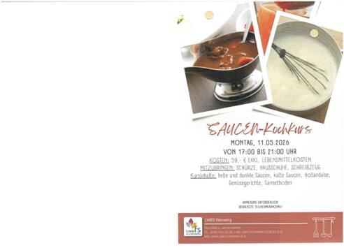 Kursinhalte: helle und dunkle Saucen, kalte Saucen, Hollandaise,