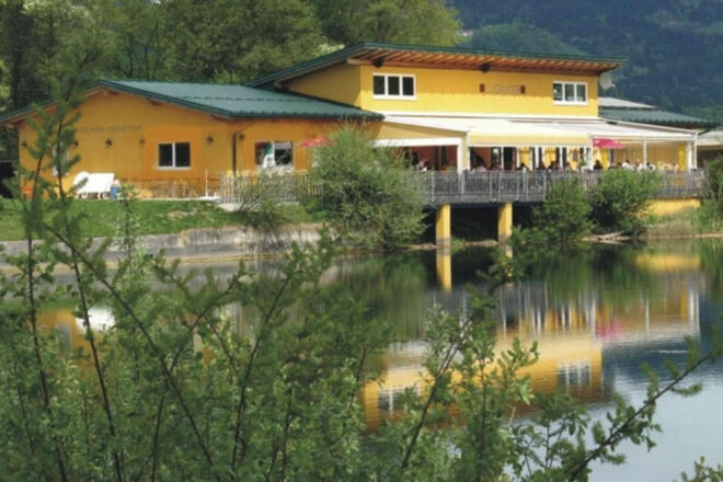 Im Sommer auf der Terrasse direkt am See, kann man den Wasserskifahrern zuschauen und so manchen Stunt beobachten.