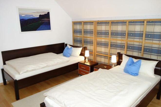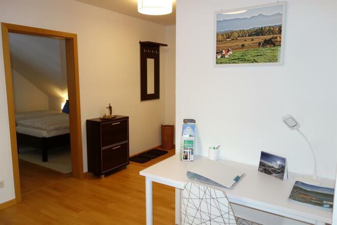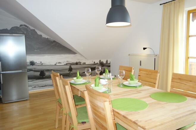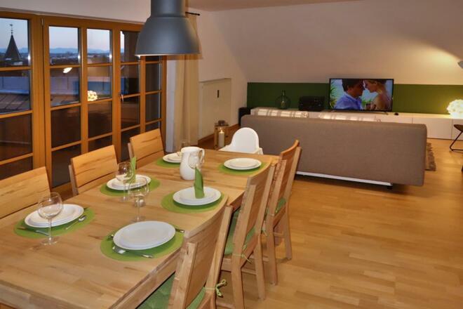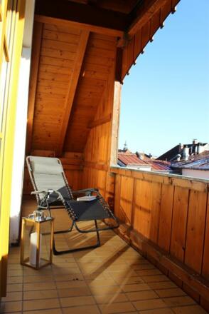 Alpenblick Wolfratshausen Wir bieten Ihnen eine großzügige und komplett neu eingerichtete 94m² Ferienwohnung mitten in der Altstadt von Wolfratshausen - ruhig und dennoch sehr zentral im Rückgebäude. Die Ferienwohnung liegt im Dachgeschoss und bietet somit einen traumhaften Blick über das gesamte Alpenpanorama (gutes Wetter vorausgesetzt). Neben zwei Schlafzimmern mit jeweils 2 Betten können weitere 2 Personen auf einer Schlafcouch im Wohnzimmer Platz finden. Genießen Sie die entspannte Stimmung in unser wunderschönen Ferienwohnung und schauen Sie von oben auf die Dächer der Stadt. Die Altstadt liegt Ihnen zu Füßen! Die Wohnung hat einen eigenen Tiefgaragenplatz mit direktem Liftzugang. Aber Achtung: Die Wohnung ist nicht barrierefrei. Der Lift hält im zweiten Stock, so dass ein Stockwerk zu Fuß zur Wohnung zurückgelegt wird. Seien Sie unsere Gäste - es soll Ihnen an nichts fehlen. Rufen Sie uns einfach an oder schreiben uns eine E-Mail. Wir freuen uns auf Sie! Viele Grüße Ihre Familie Schrenk