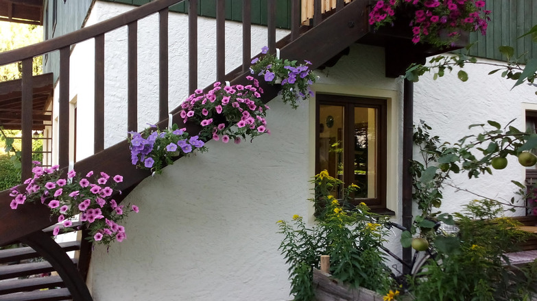 Unser Haus liegt ruhig und ländlich am Jenbach. Die 38 qm große Ferienwohnung im Obergeschoss ist durch einen separaten Eingang (mit kleiner Sitzmöglichkeit) erreichbar und ein Gästeparkplatz steht zur Verfügung. In etwa 10 Minuten erreichen Sie entlang des idyllischen Fuß- und Bachweges nahegelegene Gaststätten und Einkaufsmöglichkeiten sowie das Freibad, die Minigolfanlage und Ärzte. Dieser Wanderweg führt Sie auch direkt zu den Wasserfällen ins Jenbachtal und den Almen. Nahe Ausflugsziele: Sterntaler Filze mit Vogelbeobachtung, Moorlandschaft, Ruine Altenwaldeck, Chiemsee. Nähe Bodensee-Königssee Radweg. Skigebiete Wendelstein und Sudelfeld in ca. 25 km Entfernung. Nach Österreich/Kufstein ca. 30 km Entfernung (Festung Kufstein sowie Innenstadt). Wir bieten Hauseigene Produkte wie Marmeladen und Dinkelnudeln an.