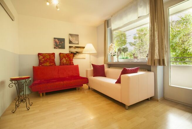Ferienwohnung im Erdgeschoss, ca. 40 m2 mit Tiefgaragenstellplatz 3 Gehminuten entfernt. Voll eingerichtete Küche, ca. 5 Minuten zum Bahnhof und in die Altstadt mit vielen Geschäften und Restaurants. Gemütliche Sitzecke, 1 Wohnzimmer (mit Schlafchouch) und 1 Schlafzimmer, Balkon mit Balkonmöbeln, offene Küche mit Essecke, TV und Radio, Waschmaschine, Fön. Bettwäsche und Handtücher im Preis enthalten. Nichtraucherwohnung!