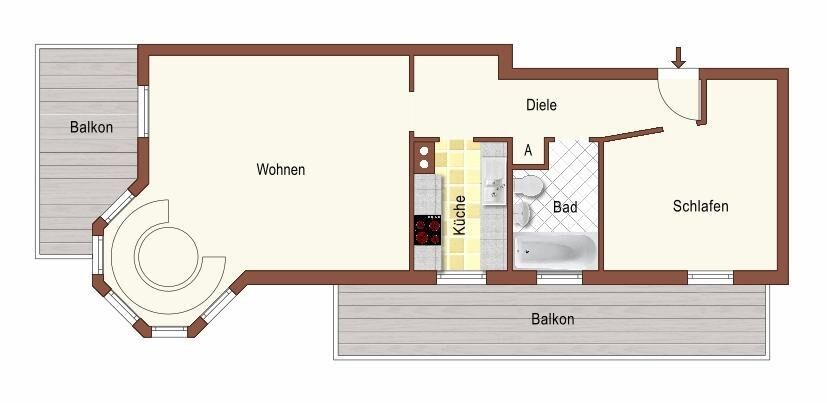 Die sehr gemütliche und gepflegte Wohnung hat ein Wohnzimmer mit einer Sitzgruppe, einem Essplatz im Erker und einen sonnigen Südbalkon mit Markise, einer komplett ausgestatteten Einbauküche, einem Schlafzimmer mit Doppelbett und Ostbalkon sowie einem Wannenbad mit Duschvorrichtung und WC.